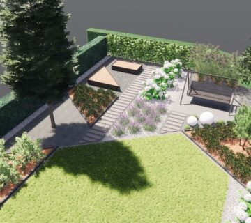 Geometryczny ogród w bliźniaczej zabudowieLOKALIZACJA: Gorzów Wielkopolski, lubuskie POŁOŻENIE OGRODU: Przy domu w zabudowie bliźniaczej OCZEKIWANIA KLIENTA: Ogród nowoczesny, geometryczny układ rabat RZUT Z ... Zobacz więcej